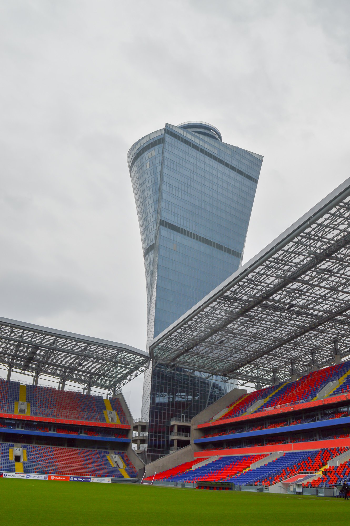 142-метровая башня в юго-западном секторе стадиона символизирует Кубок УЕФА, завоеванный ЦСКА в 2005 году. В ближайшее время болельщики смогут подняться наверх, полюбоваться видом на Москву и футбольное поле.