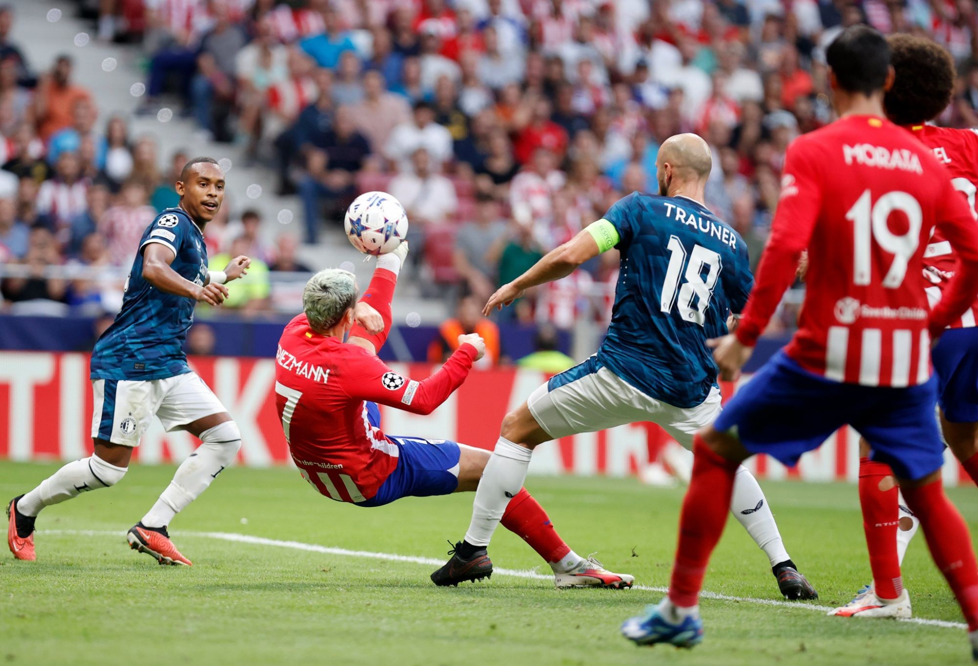 Форвард «матрасников» Антуан Гризманн исполнил роскошный удар «ножницами» в матче с «Фейеноордом». На 45+4' минуте после подачи с углового и нескольких рикошетов мяч прилетел во вратарскую к Гризманну, который и нанес эффектный удар в падении через себя.